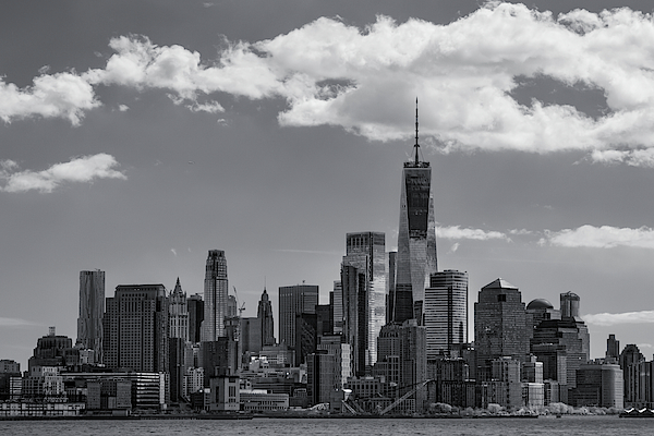 Lower Manhattan NYC Skyline IR - Lower Manhattan Skyline in New York City. Seen is One World Trade Center and other skyscrapers in the Financial District. as seen from across the Hudson River in New Jersey.