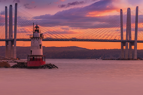 Tarrytown Light and Tappan Zee - Tarrytown Lighthouse also know as the Sleepy Hollow Light and Kingsland Point Light during sunset with the Tappan Zee Bridge in the background. Tarrytown Light has been around since the 1880's.