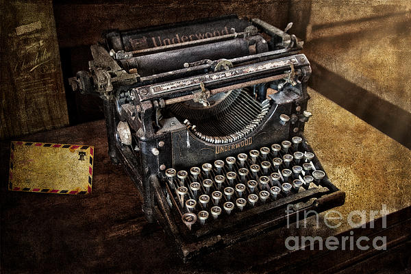 Photograph of a vintage Underwood typewriter. The Underwood Typewriter Company was a manufacturer of typewriters headquartered in New York City, New York. Underwood produced what is considered the first widely successful, modern typewriter.